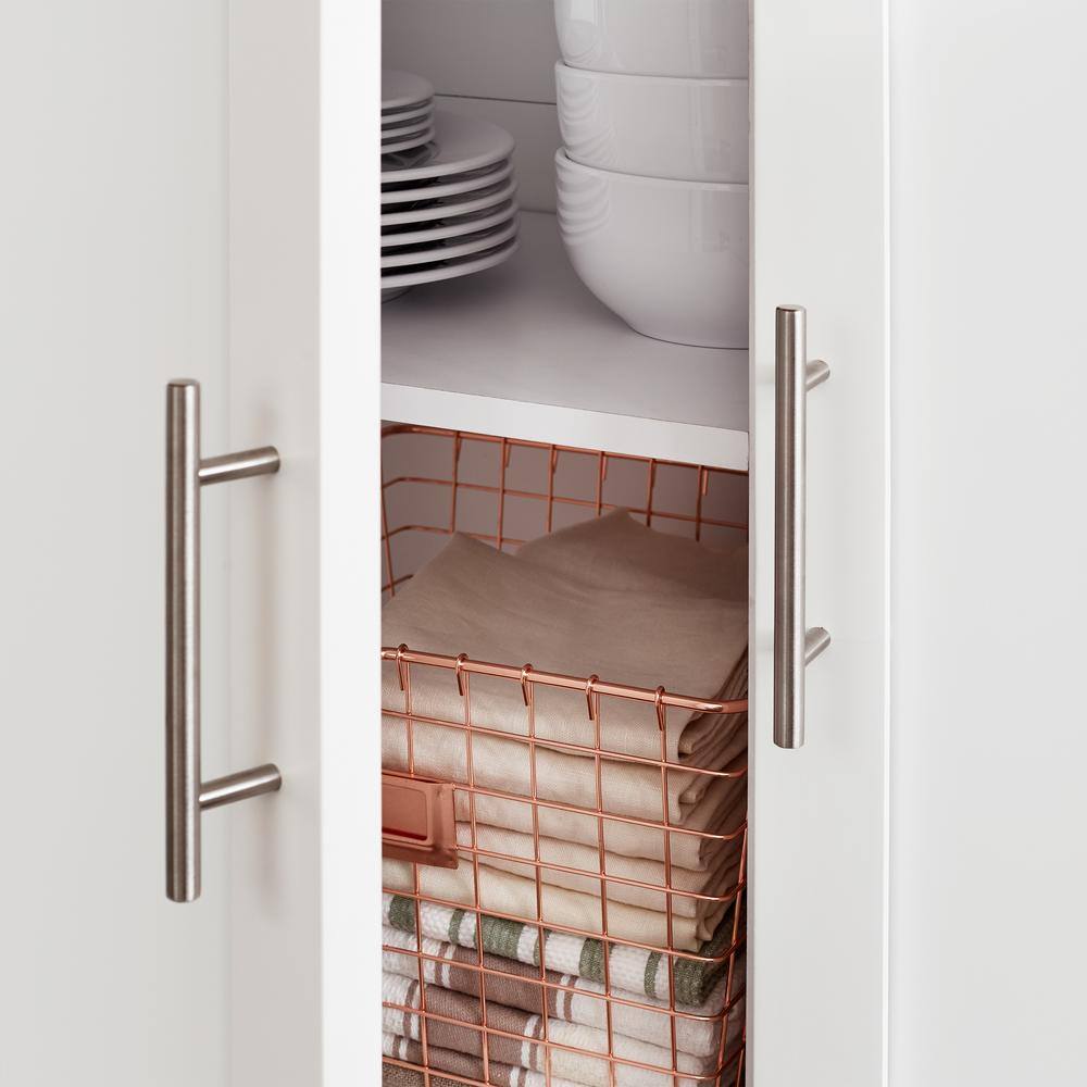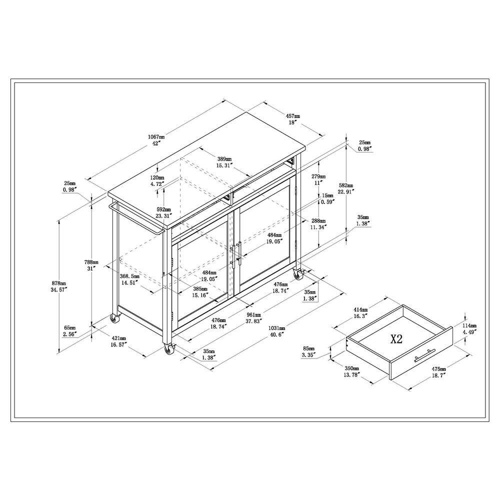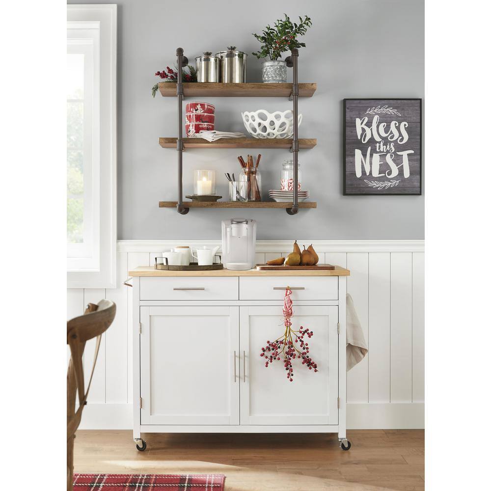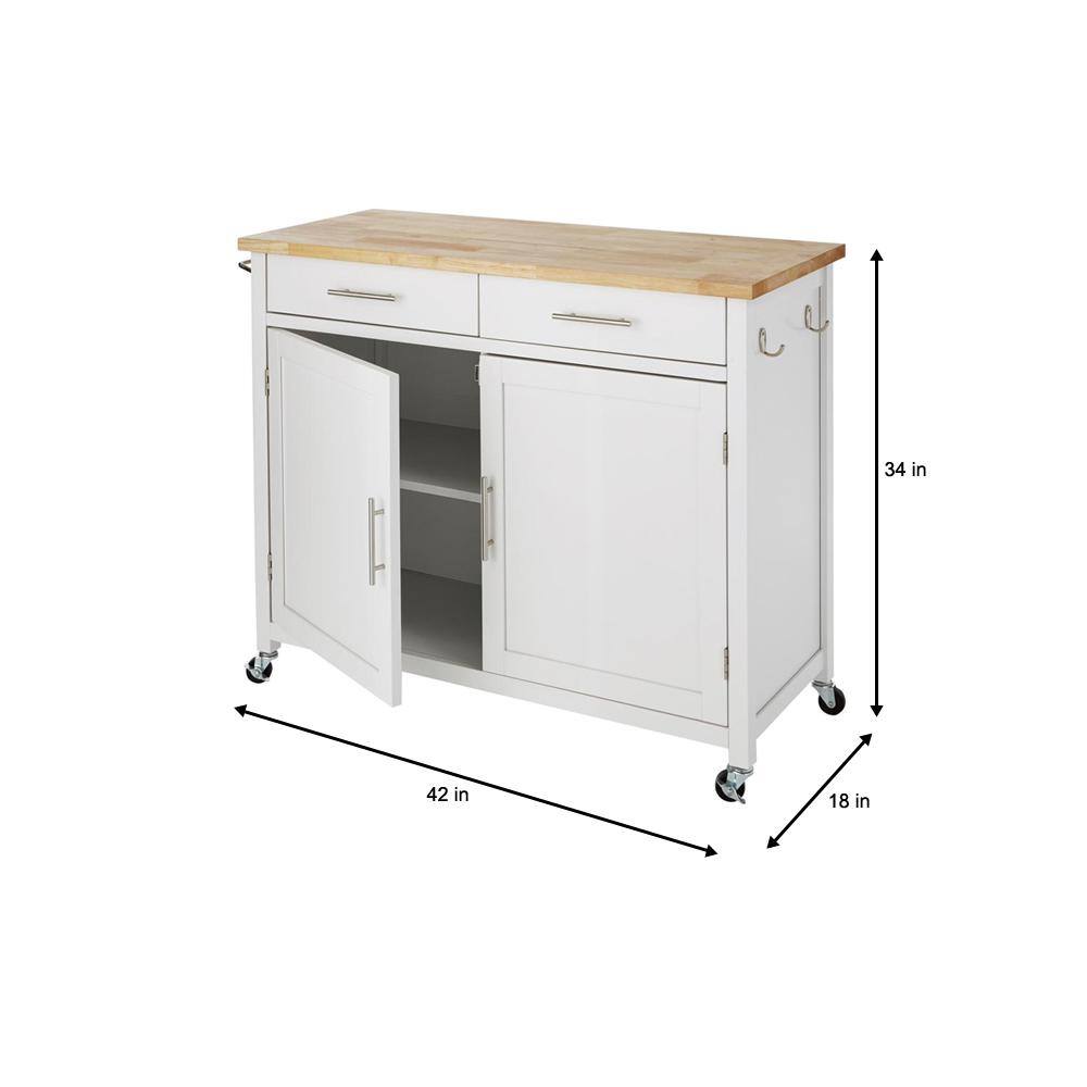 StyleWell SK17787Cr2-EBW Glenville Cream White Rolling Kitchen Cart with Butcher Block Top and Double-Drawer Storage (42″ W)