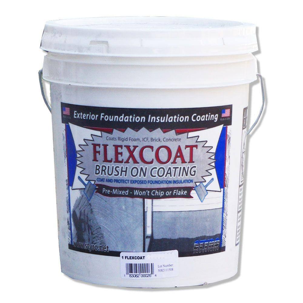 Protect and beautify your foundation insulation or ICF, (Insulated concrete forms), by applying FLEXCOAT 200 SF 5 Gal. Foundation Coating. The coating protects the rigid foam insulation board or ICF from UV exposure and light physical damage. The coating can also be used to create attractive brush like or swirl finishes on concrete, brick or masonry walls or to finish drywall without the hassle of mudding. The coating also helps control moisture.