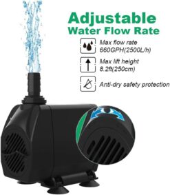 Submersible Pump 660GPH (2500L/H 45W) Ultra Quiet with Dry Burning Protection 8.2ft High Lift for Fountains, Hydroponics, Ponds, Aquariums & More…