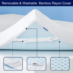 - Removable & washable cover: The bamboo rayon cover adopts skin-friendly knitted fabric, comes with adjustable elastic straps which fit mattress depth up to 12″, equips with mesh fabric backing to prevent sliding and premium metal zipper for easy removal and washing.