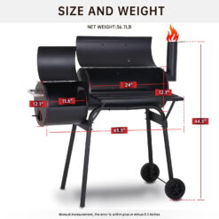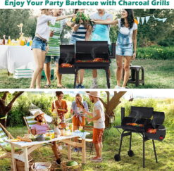 SUGIFT BBQ Grill is very suitable for family use, even when a few friends come over. It is also ideal when you just want to have a simple barbecue on the upper charcoal grill. The grill adopts a new spray paint process, which is resistant to high temperature and not easy to peel off. The 442 square inch enamel cooking grate is durable, and you can adjust the cooking temperature with a 2-stage adjustable charcoal pot. Ensure good heat and smoke circulation. The side door can easily add charcoal and clean ashes. Opening vents and chimneys can effectively store fire and transfer smoke. Use the built-in thermometer on the lid to check the internal temperature. The wooden handle protects the hands from heat. There are two durable wheels that can be easily moved from one place to another. Use a smoker with a backyard to prepare delicious meals for your family. This is a compact and versatile device that can be easily installed on most terraces, balconies and decks.