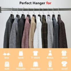- 【SQUARE 360° SWIVEL METAL HOOK】: Our thick hangers feature a unique and sturdy square 360° swivel chrome hook, allowing you to effortlessly turn the hanger sideways to check your clothes without removing them. Hanging and scanning all your hangers becomes simpler. Even if you accidentally hang them in the wrong direction, your clothes can be easily flipped, allowing you to hang and access clothes from any angle.
