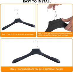 - 【EASY TO ASSEMBLE】: Each dedu hangers is independent, providing you with 20 black wide suit hangers, 20 silver square hooks, and an installation instruction. Simply follow the instructions for easy installation, resulting in heavy-duty support hangers. These suit hangers for men are versatile, suitable for a wide range of applications, including suits, coats, shirts, jackets, dresses, and more.