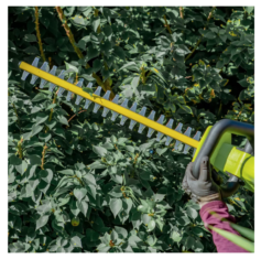 So, to maintain a well-groomed garden, Go With Joe® — the 24V-HT22-LTE 24-Volt Cordless Hedge Trimmer from SUN JOE®. GET EQUIPPED®.