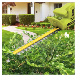 GIVE YOUR YARD A MAKEOVER! Are your shrubs shaggy? Do your hedges need a haircut? Count on Sun Joe® to put your yard back in top shape, with reliable results you can see every time with the HJ22HTE-MAX 22-Inch Electric Hedge Trimmer. Sun Joe’s® potent 3.8-amp motor and durable, dual-action 22″ rust-resistant forged-iron blades provide the power and precision you demand to tackle your toughest shrubbing + shearing tasks. Lightweight, sleek, ergonomic and easy to maneuver at just 5.1 lbs, it will quickly become your go-to tool to cut cleanly through thick hedges and shrubs for a crisp, clean line. Eco-friendly and electric, there’s never a need to mess with gas or oil – or worry about maintenance, tune-ups or toxic emissions. And Sun Joe’s® built-in dual-handed safety switch eliminates dangerous accidental starts for enhanced user safety. For maximum results with minimum strain, Go With Joe® to whip your yard back into tip-top shape.