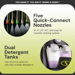 Versatile Cleaning: Includes 5 Quick-Connect spray tips (0°, 15°, 25°, 40°, and soap) for customized cleaning from pinpoint jet to powerful fan, plus a convenient soap applicator