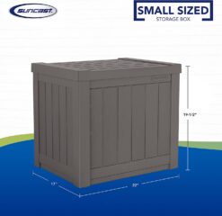 Suncast 22-Gallon Small Deck Box – Lightweight Resin Indoor/Outdoor Storage Container and Seat for Patio Cushions and Gardening Tools – Store Items on Patio, Garage, Yard – Stone Gray