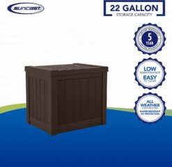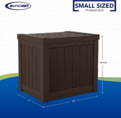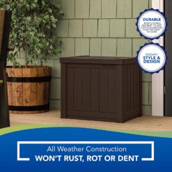 Suncast 22-Gallon Small Deck Box – Lightweight Resin Outdoor Storage Deck Box and Seat for Patio Cushions, Gardening Tools and Toys – Java Brown