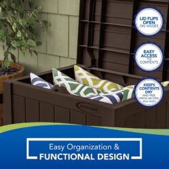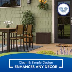 - DECK OUTDOOR STORAGE BOX: Beautiful plastic outdoor box with a java brown finish has a 22-gallon capacity for patio, deck, yard, porch, garage, and shed storage!