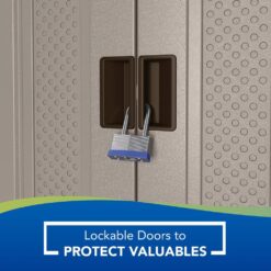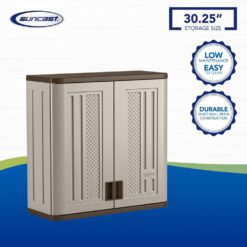 The Suncast® Wall Storage Cabinet shatters the notion that garage storage needs to be metal to be strong and stable. The multi-wall, resin panels are engineered for added strength and durability, making it resistant to dents, rust, and rotting. With pad-lockable doors, this cabinet is sure to keep your items safe and secure. The sturdy shelf included with this cabinet can hold up to 50 pounds, providing a great space to keep sporting equipment, hand tools, and more. This low maintenance, easy to clean cabinet provides a storage solution that combines style and function to keep your garage organized and tidy!