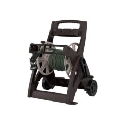 The Suncast Hose Mobile Pro Hose Reel Cart has an aluminum in/out tube to ensure a no-leak guarantee. Hose reel comes with a leader hose and features a manual crank. This portable garden hose reel holds up to 225 ft. of standard 5/8 in. hose neatly and conveniently out of the way. Slide trak hose guide makes winding and unwinding hose easier. Durable plastic construction is rigid and easy to care for.