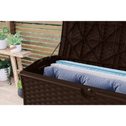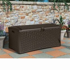 The decorative wicker pattern stands out in any space, while the durable resin construction ensures easy maintenance and allows for year-round use. Plus, the lid of the unit can be padlocked to provide additional security (padlock not included). Suncast DBW7000