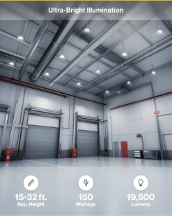 Sunco 10 Pack UFO LED High Bay Light, Shop Lights for Warehouse, Plug & Play, 19500 LM, 150W, 4000K Cool White, Power Cord Included, IP65 Waterproof Shatterproof Fixture UL.