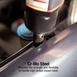 - Cr-Mo steel sockets provide the strength and flexibility to handle high torque impact tools
