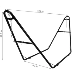 - Measures 124 inches long x 40 inches wide x 52.5 inches tall; With the included chains and hardware this stand will fit small to large hammocks including Brazilian and spreader bar style ranging from 9.5 feet to 14 feet long; Weight capacity: 550 pounds