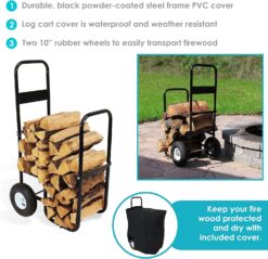 Sunnydaze Outdoor Firewood Log Cart with Pneumatic Tires and Heavy-Duty Polyester/PVC Cover