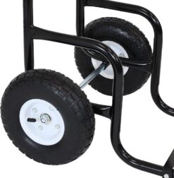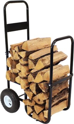 - Durable design: The wood-hauling cart features a durable tubular steel construction with a black, powder-coated finish. The pneumatic wheels allow for extra comfort as you move and maneuver a large load of wood.