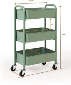 SunnyPoint 3-Tier Delicate Compact Rolling Metal Storage Organizer – Mobile Utility Cart Kitchen/Under Desk Cart with Caster Wheels (TURQ, Compact (15.5″ X 26.8″ X 10.27″))