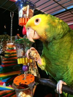 - ENRICHMENT BENEFITS – the Bottom’s Up bird toy is designed to not only entertain but also to help satisfy a parrot’s instinctual drive to forage. Foraging devices require birds to search for their food. Placing foraging toys at various levels in the cage will promote movement.