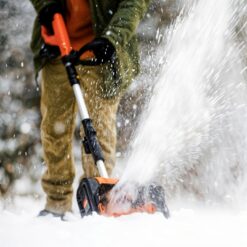 - High-Performance Power: Equipped with a 20V electric motor, removes up to 300 lbs of snow per minute and throws snow up to 25 feet.