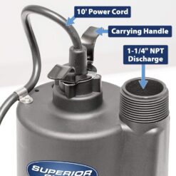 Superior Pump 91250 1800GPH Thermoplastic Submersible Utility Pump with 10-Foot Cord, 1/4 HP
