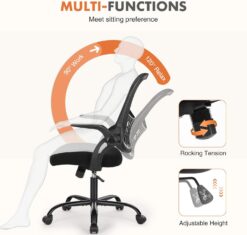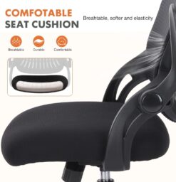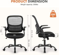 Sweetcrispy Office Chair Ergonomic Home Office Desk Chairs, Breathable Mesh Back Lumbar Support Computer Chair, Adjustable Height Swivel Task Chair with Flip-up Arms & Wheels, Black