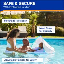 Introduce the fascinating world of the water to your little beginner swimmer in a fun and safe way with the Swimways Sun Canopy Inflatable Infant Spring Float. This exciting float made for infants three to nine months old comes with all the same great features of the original Infant Spring Float with the addition of the new Hyper-Flate technology. This spring float is a part of Swimways’s Swim Step 1: First Splash items for water introduction that helps babies become comfortable in the water, keeping them supported and balanced. The new and exclusive Hyper-Flate Valve features extremely innovative and convenient technology that enables parents to inflate the float approximately three times faster than before. This floatation device is made with comfortable anti-stick fabric featuring underwater animals and inner spring technology for stability. The canopy has UPF 50+ protection and is adjustable and removable to provide shade from the sun.