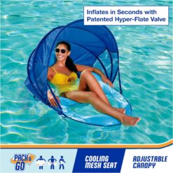 - ULTIMATE COMFORT: Lay back in the mesh seat and integrated headrest, backrest, and footrest and float into relaxation; This adult pool float suspends your lower body just below the water’s surface and includes a built-in cup holder to keep your drink close