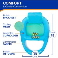 - INFLATABLE BACKREST: Fabric-covered backrest keeps you upright while the cares of everyday life drift away, and the cupholder allows you to bring your favorite drink on the water so you can sip and float