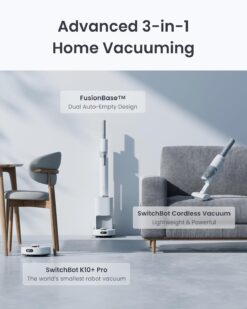 SwitchBot Robot Vacuum and Cordless Vacuum Cleaner K10+ Pro Combo, TwinFlow™ Suction Tech, Dual Dust Collection Station, Compact, Lightweight, Quiet, Compatible with Alexa/Siri/Matter(Hub 2 Required)