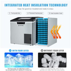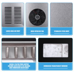 44 POUNDS PER DAY & INSULATED ICE MACHINE: High Power cooling process makes the ice maker produce up to 44 pounds of ice every 24 hours (Making 18 bullet ice cubes for one cycle in just 11 minutes). Designed with a thick, insulated interior, this ice machine regulates temperatures to keep cubes frozen for longer.