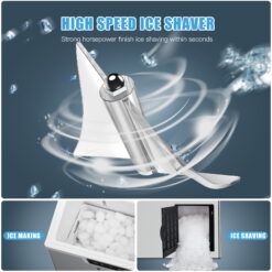 UNIQUE 2-IN-1 ICE MAKER SHAVER: The first ice machine that has both ice making and ice shaving functions to meet all your needs. Making ice and shaving ice at the same time, this ice maker shaver will bring you convenience and efficiency. Buy one, get functions of 2 ice machines.