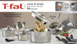 T-fal Cook & Strain Stainless Steel Cookware Set, 14 Piece Set, Dishwasher Safe
