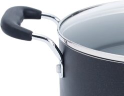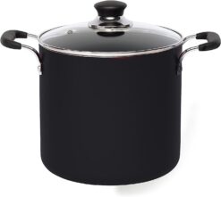 - 8-quart stockpot made of heavy-gauge aluminum for excellent heat conduction