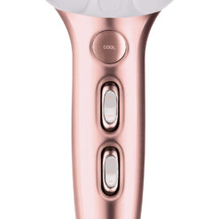 Featuring an on-trend design, this dryer contrasts white with rose gold accents for a beautiful appearance and has a 9-foot power cord. Keep the cord securely tucked away when not in use with the included cord wrap. An ergonomic design supports comfortable use, and the balanced weight makes it easy to use on any hair length.