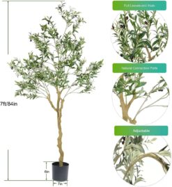 Tall Faux Olive Tree, 7ft(84in) Realistic Potted Silk Artificial Indoor with Green Leaves and Big Fruits for Home Office Living Room Bedroom Stairs Foyer Decor.