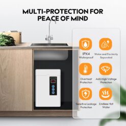 - Safe and Reliable: The instant hot water heater has a memory function or an automatic alarm function when the power supply position and failure occur. IPX4 waterproof, leakage protection, dry-burning protection, automatic power-off in over-temperature and inactive states.Leakage protection,when leakage ,the protection device will cut off the power supply immediately