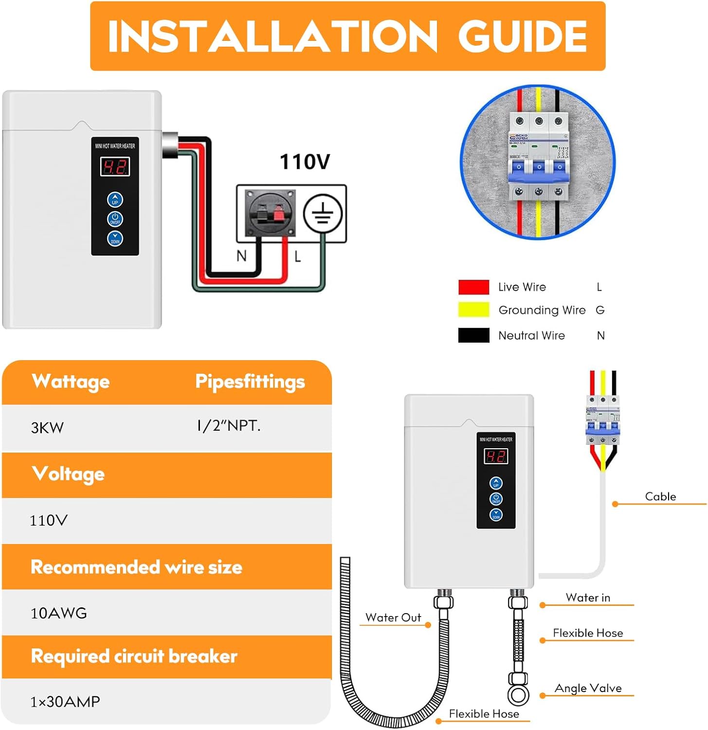 - Space Saving: This water heater has a compact appearance, it can be easily installed under the sink, it is very suitable for every corner of your home, no need to occupy an area, enjoy hot water at any time. Make sure it’s the right size for you: 3KW at 110V, product measures 9″ x 2.5″ x 5″