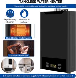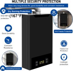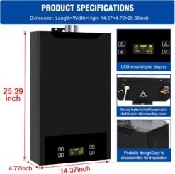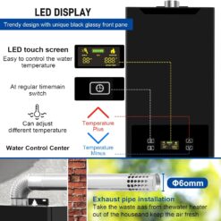 - 【Quality Material】-This of ours Water Heater Crafted from stainless steel, our Propane water heater exhibits high temperature resistance and corrosion resistance. It also features a built-in oxygen-free copper water tank, reduce heat loss ensuring a prolonged service life.with with LED smartdigital display effortlessly adjust the temperature between 86°F-167°F according to your preferences.