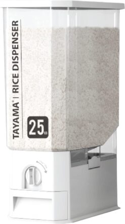 TAYAMA 55 lbs. Capacity Rice Dispenser Grain Storage Container,White