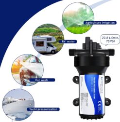 - 【Easy Installation】Assembled with 3/4” male inlet/outlet and 1/2” male inlet connector, 4.3ft power cords with standard US plug, the pump can be easily installed in RV, marine, home and garden to water hoses.