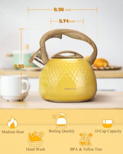 Tea Kettle, Stovetop Teapot, 2.5 Quart, Loud Whistle, Food Grade Stainless Steel and Smooth Wood Pattern Handle, Sophisticated Look for Hiking, Picnic, for Tea, Coffee, (Yellow)