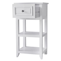 Upgrade your home storage while adding classic decor with the Teamson Home Dawson Wooden Floor Cabinet with Cross Molding and Drawer. This decorative cabinet features a white finish with cross molding on the glass-paneled door and clear knobs for a beautiful addition to your space. The included drawer and 2 fixed shelves help to reduce clutter and keep your home tidy. Constructed from durable engineered wood, this floor cabinet is built to provide you with long-lasting organization. Easy, step-by-step instructions and all of the hardware needed for installation are included for quick assembly. Purchase this stylish cabinet alone or with other items from the Dawson collection for a cohesive, updated look. The Teamson Home Dawson Wooden Floor Cabinet with Cross Molding and Drawer measures 11.13″ x 15″ x 28″ to provide accessible storage without taking up too much space in your living area or bathroom.