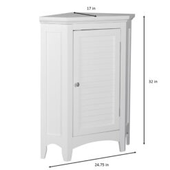 Upgrade your home storage while adding classic style with the Teamson Home Glancy Wooden Corner Floor Cabinet with Shutter Door. This decorative cabinet features a timeless white finish with a crown molded top and skirting, a chrome-finished knob, a louvered door, and shaker-style legs for a beautiful addition to your space. The included interior shelf makes this cabinet a functional solution to your storage needs. Constructed from durable engineered wood with included anti-tipping hardware, this storage unit is built to provide you with long-lasting organization. Easy, step-by-step instructions and all of the hardware needed for installation are included for quick assembly. Purchase this stylish corner cabinet alone or with other items from the Glancy collection for a cohesive, updated look. The Teamson Home Glancy Wooden Corner Floor Cabinet with Shutter Door measures 24.75″ x 17″ x 32″ and fits easily into corners to provide accessible storage without taking up too much space in your living area or bathroom.