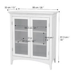 Upgrade your home storage while adding classic decor with the Teamson Home Madison Wooden Floor Cabinet with 2 Glass Doors. This decorative cabinet features a white finish with arched bottom skirting, 2 glass doors, and chrome knobs for a beautiful addition to your space. The 2 included adjustable interior shelves help to reduce clutter and keep your home tidy. Constructed from durable engineered wood and tempered glass, this floor cabinet is built to provide you with long-lasting organization. Easy, step-by-step instructions and all of the hardware needed for installation are included for quick assembly. Purchase this stylish cabinet alone or with other items from the Madison collection for a cohesive, updated look. The Teamson Home Madison Wooden Floor Cabinet with 2 Glass Doors measures 13″ x 26″ x 32″ to provide accessible storage without taking up too much space in your living area or bathroom.