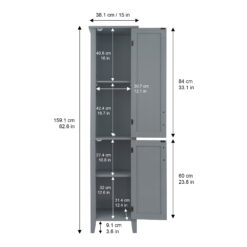 Upgrade your home storage while adding mid-century modern decor with the Teamson Home Mercer Mid Century Modern Wooden Linen Tower Cabinet. This decorative cabinet features a gray finish with two doors and brass pulls for an elevated and stylish addition to your space. The two interior adjustable shelves provide storage for extra towels, linens, blankets, toiletries, and more to keep your home tidy. Constructed from durable engineered wood, this floor cabinet is built to provide you with long-lasting organization. Easy, step-by-step instructions and all of the hardware needed for installation are included for quick assembly. Purchase this stylish cabinet alone or with other items from the Mercer collection for a cohesive, updated look. The Teamson Home Mercer Wooden Linen Tower Cabinet with 2 Doors measures 13″ x 15″ x 62.67″ to provide accessible storage without taking up too much space in hallways or the bathroom.