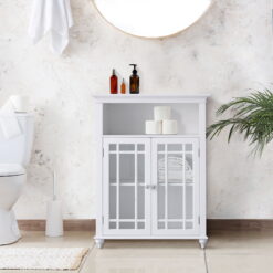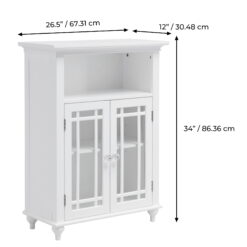 Teamson Home Neal Bathroom Storage Floor Cabinet with 2 Glass Doors, White