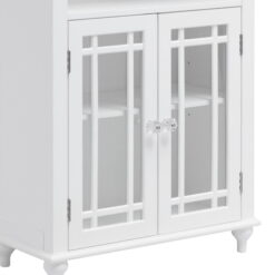 Use Teamson Home Neal Wooden Floor Cabinet with 2 Glass Doors to put contemporary style in your home and upgrade your storage area. This ornamental cabinet adopts 2 glass doors decorated with grid molding, clear knobs and white finish adding glam to your space. The adjustable interior shelf makes you to reduce mess and keep your house neat and tidy. This cabinet is made from durable engineered wood and tempered glass, it born to supply you long-lived organization. The instructions which taught you step by step and easily assembly is included and so does all of the hardware you need for installation. You can buy this stylish cabinet separately or with other items from the Neal collection to get a consistent and new look. The Teamson Home Neal Wooden Floor Cabinet with 2 Glass Doors sized 12 in. x 26.5 in. x 34 in. It’s easy to store and won’t occupy too much space in your living area or bathroom.
