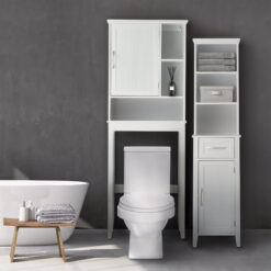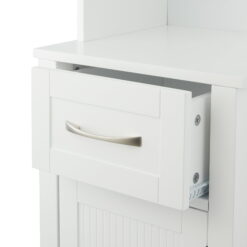 Upgrade your home storage while adding modern classic style with the Teamson Home Newport Contemporary Wooden Linen Tower Cabinet. This decorative cabinet features a white finish with flat beaded shaker door and brushed nickel pulls for an elevated and stylish addition to your space. The adjustable open shelves, middle drawer, and bottom cabinet provide storage for extra towels, linens, blankets, toiletries, and more to keep your home tidy. Constructed from durable engineered wood, this floor cabinet is built to provide you with long-lasting organization. Easy, step-by-step instructions and all of the hardware needed for installation are included for quick assembly. Purchase this stylish cabinet alone or with other items from the Newport collection for a cohesive, updated look. The Teamson Home Newport Wooden Linen Tower Cabinet with Open Shelving measures 13″ x 15″ x 63.2″ to provide accessible storage without taking up too much space in hallways or the bathroom.