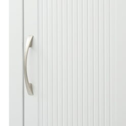 - STYLISH LINEN TOWER CABINET: Features a white finish with flat beaded shaker door and brushed nickel pulls for an elevated and stylish addition to your space.